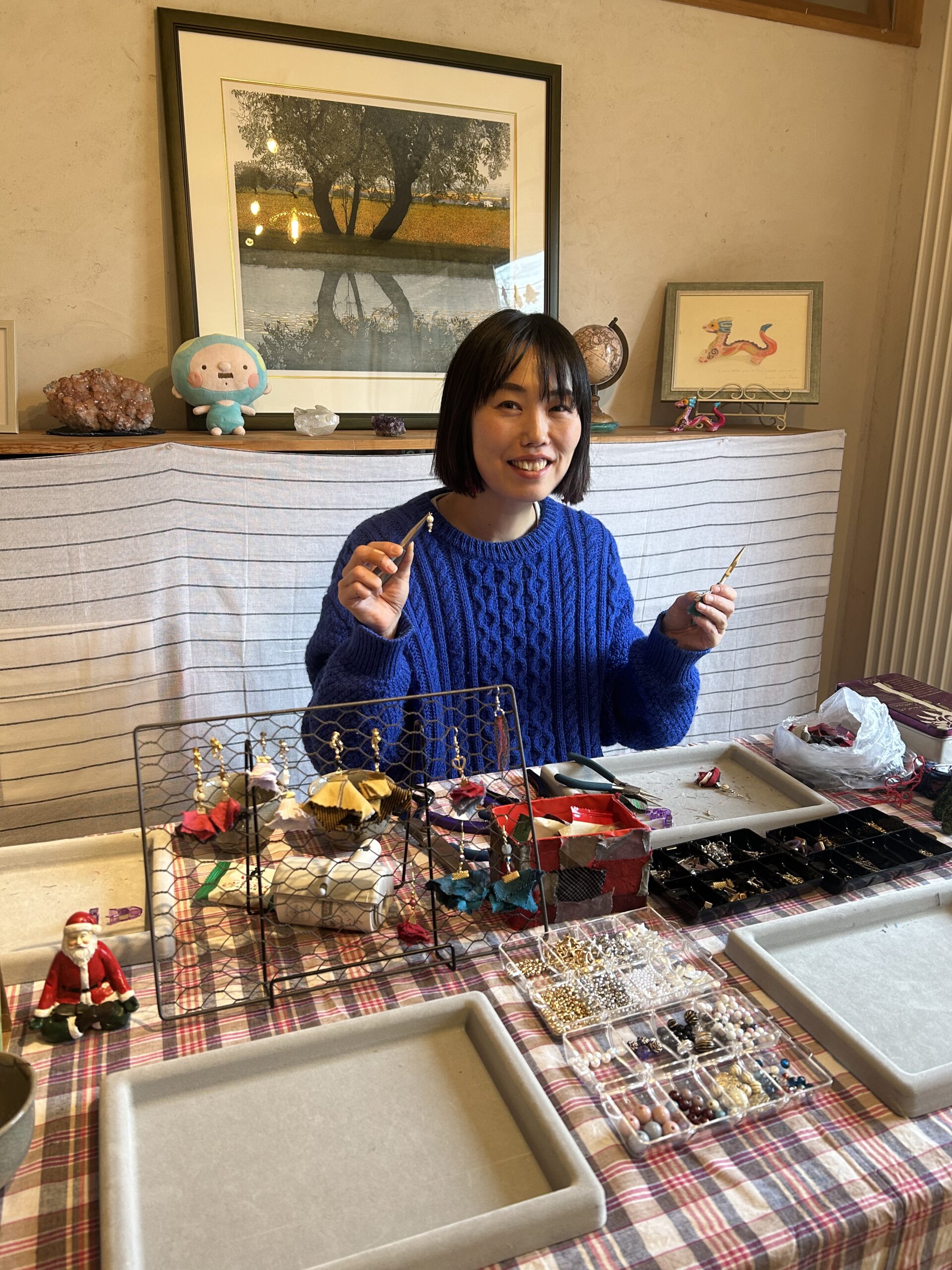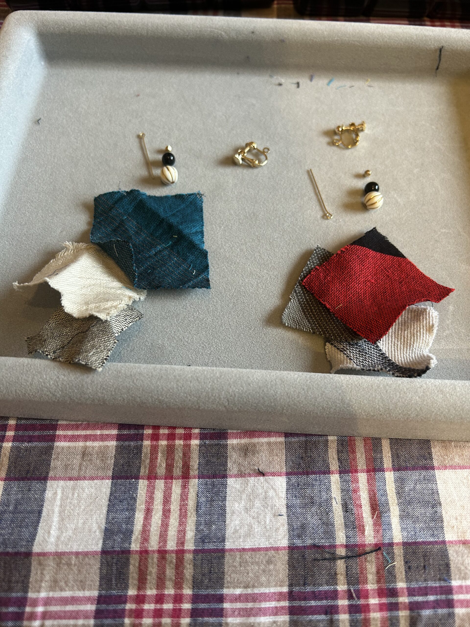 ここでも美穂さんが一役買ってくれています。今日、美穂さんが玉木新雌さんの端切れで作るイヤリングのワークショップを開催されていたのです。そのタイミングで自分も時間が合ってお邪魔できたので、美穂さんマジックも相当あると思います。ちょっと届かないところに、先ゆく先輩がいることでスッと超えられる、そんな経験は本当にありがたいことです。