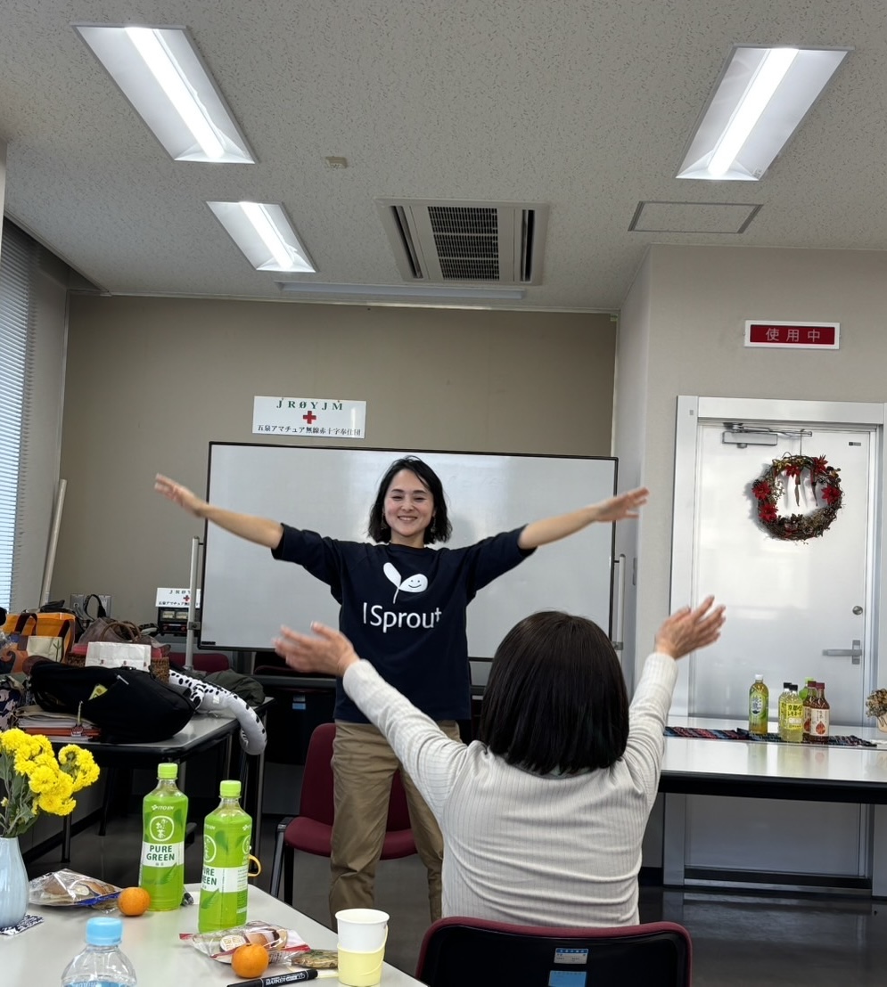 私は笑いヨガのリーダー資格も持っているので、間の15分間で笑いヨガをさせていただきました。みんなで嘘笑いで笑って、たくさん呼吸を吐き出して、少し疲れて、呼吸に意識を向けて、落ち着いてから後半のおしゃべりタイムです。